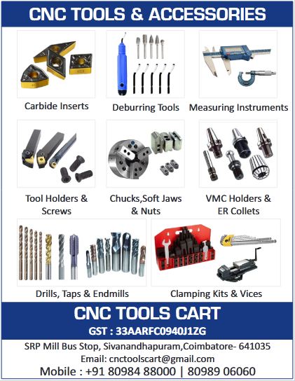 "We are dealing all types of carbide inserts, carbide drills, hss drills, taps, BT40 holders, TVS bolts & nuts, Allen bolts, Allen keys, Tool holders, boring bars, Mounts and all accessories."