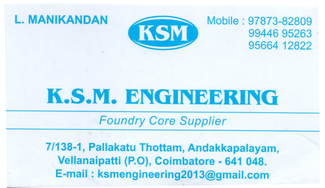 48, SS Foundry Complex, Nava India Road K R Puram