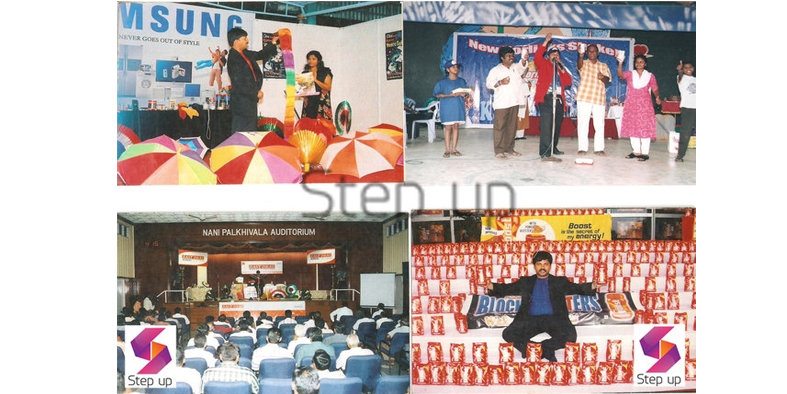 more than 35 years of experience with magnetism, personality and showmanship has influenced many and enthralled audiences all over the India. We has started his journey of event management in the year 1991. we has performed and conducted at many prestigious events across India and dazzled audiences of all ages with a powerful mix of the most outrageous and astonishing acts ever to be seen on stage.We STEP-UP has performed and conduct more than 5,000 shows in the period of 25 years. Our troupe comprises 25 people drawn from different walks of life. Our showcased his skills at educational institutions, corporate companies, celebrity nights and TV shows.