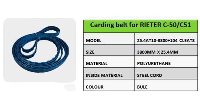 Carding Machine Belts are most commonly offered in widths of 25, 26mm, while custom sizes (lengths, widths and pitches) are available upon request.