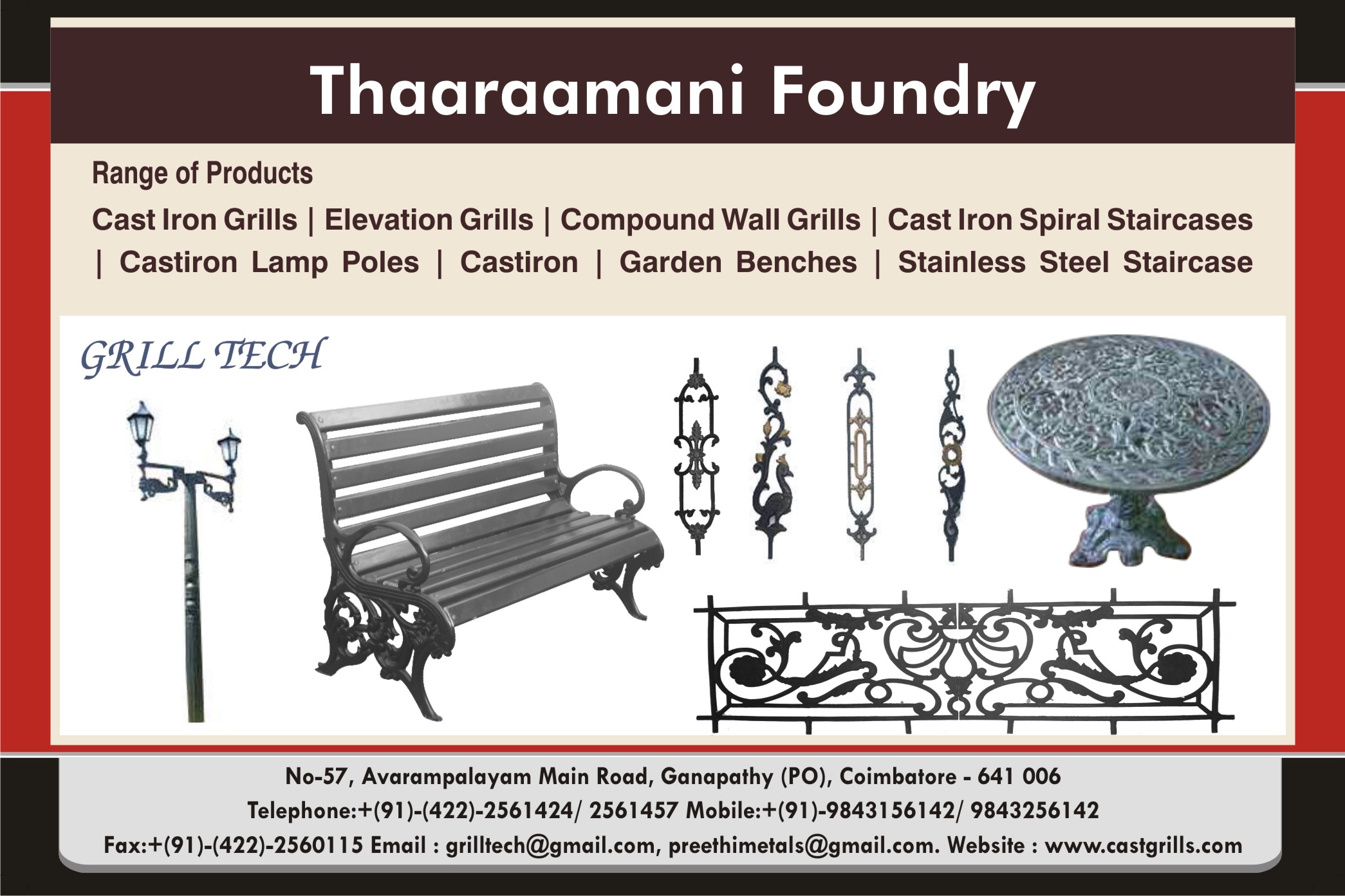 We are one of the leading manufacturer, exporter and supplier of a wide range of cast iron furniture, cast iron garden benches, cast iron garden furniture, cast iron grills and furniture. These include cast iron grills, spiral staircases, compound wall grills, lamp posts, grills for all types of buildings, garden benches and wall design grills. Manufactured using superior quality cast iron, pig iron & coke, these products have gained immense recognition in domestic as well as international markets. In addition to these products, we also offer our clients with turnkey solutions.